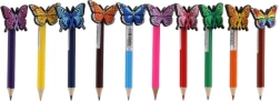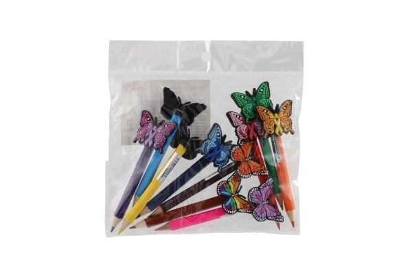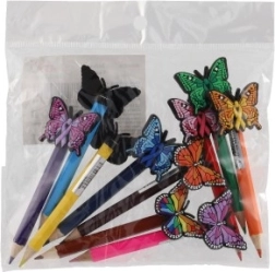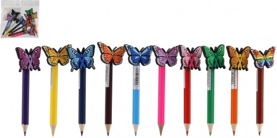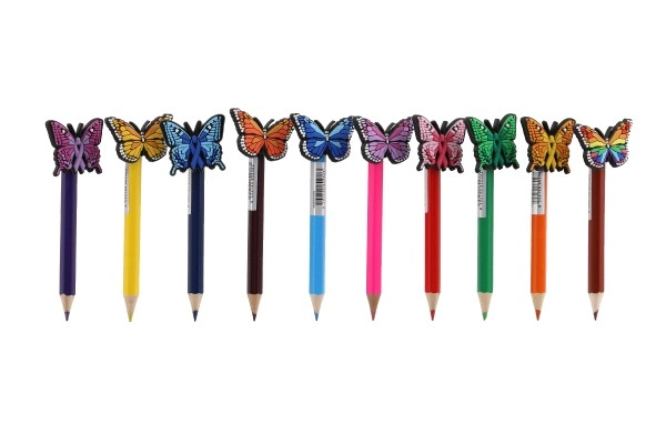 Cada lápiz está decorado con una mariposa de colores que aporta un aspecto alegre y funcional.