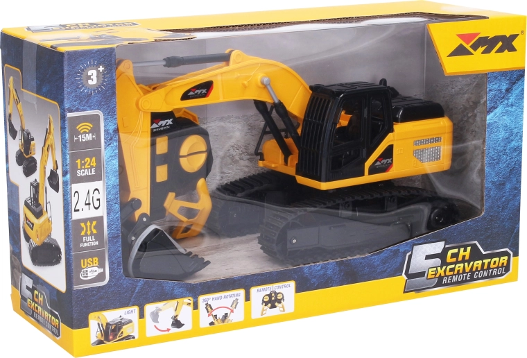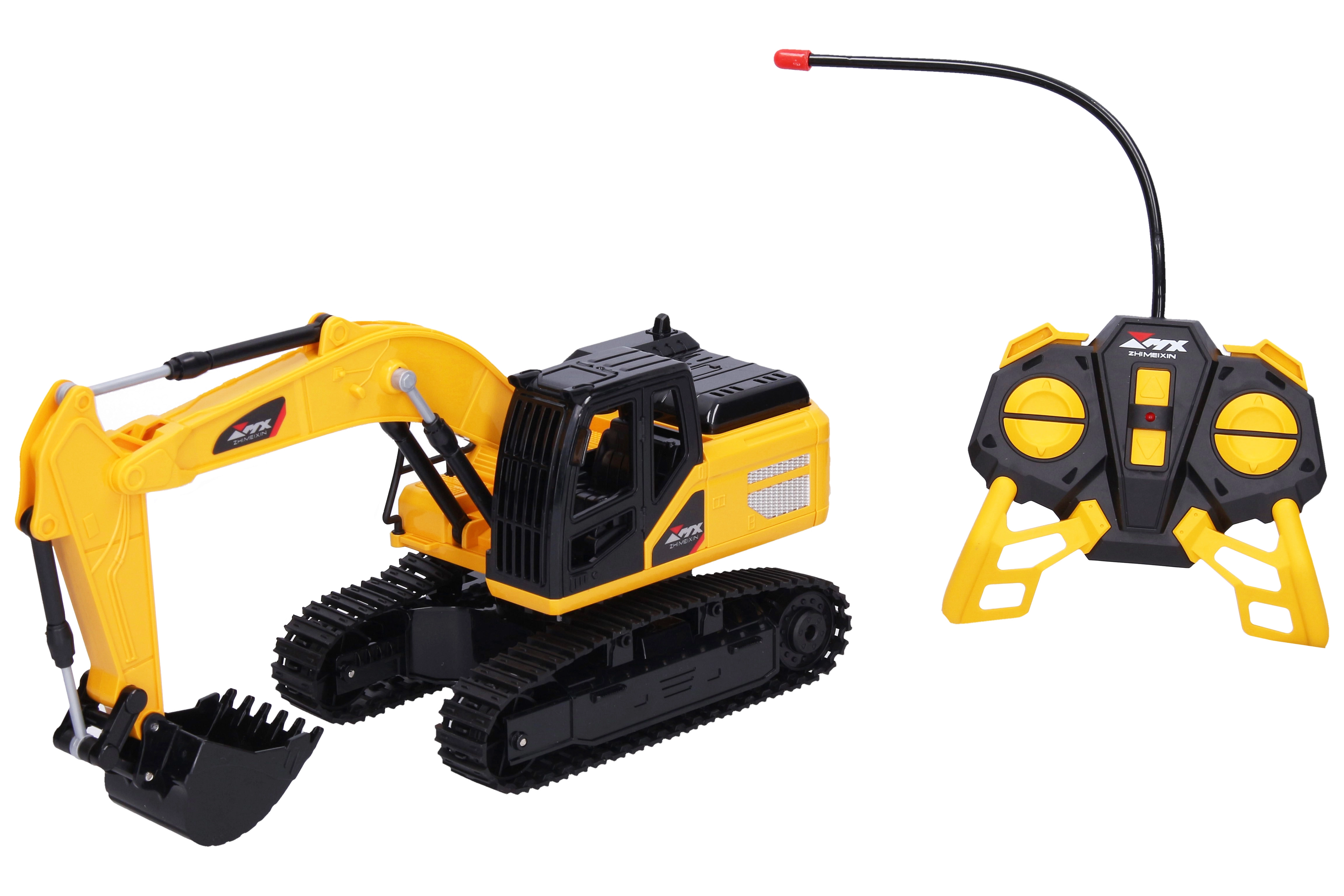 Descubre la diversión de la maquinaria de construcción en pequeño: esta excavadora RC por control remoto ofrece un gran juego para niños desde 3 años. Gracias a la frecuencia de 40 MHz y un alcance de hasta 15 m, disfrutarás de un control fluido. Incluye efectos de luz, elevación y descenso del brazo cargador mediante botones en el mando y giro manual de la base. Se incluye un pack de batería recargable de 3,7 V 500 mAh y un cable USB.
