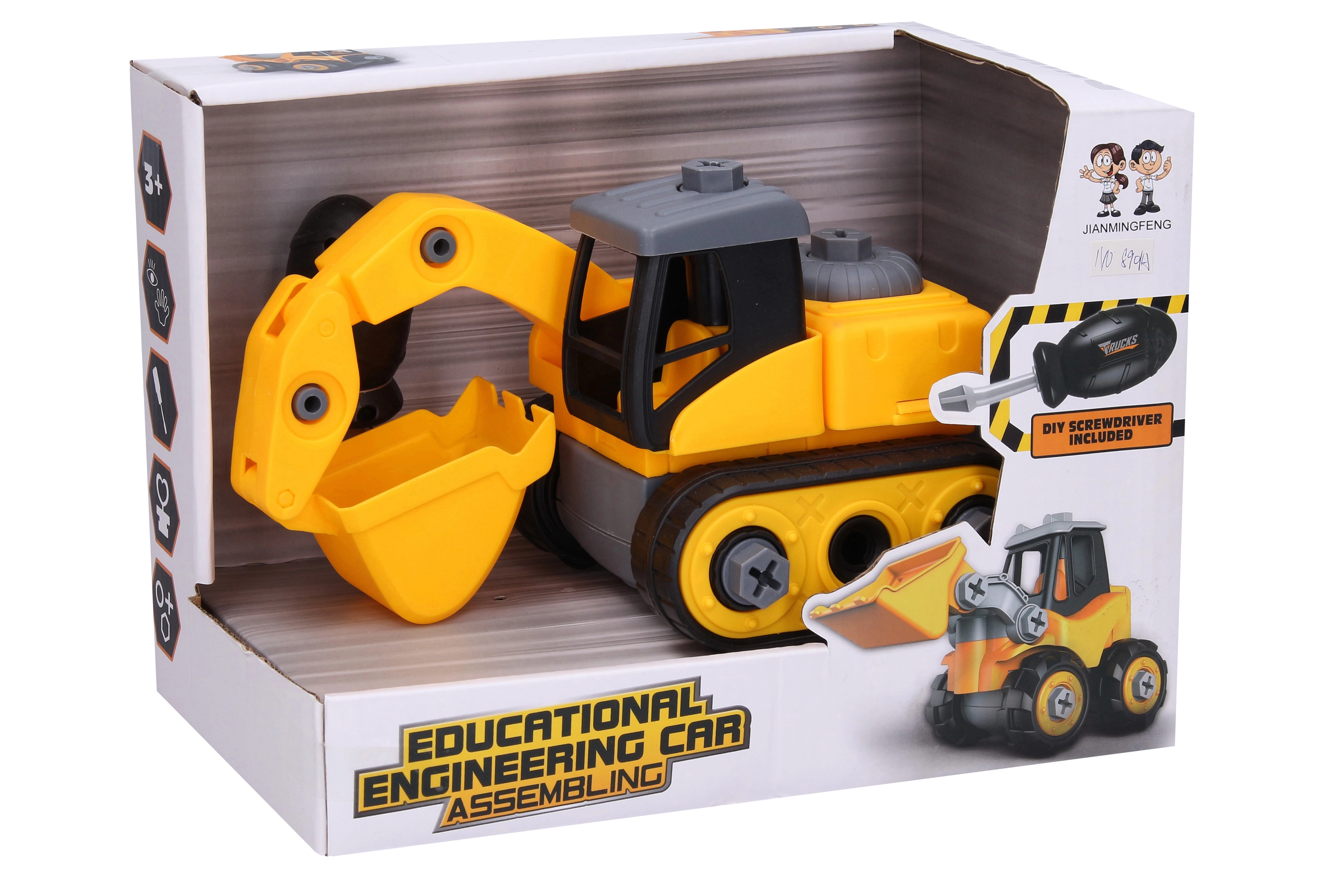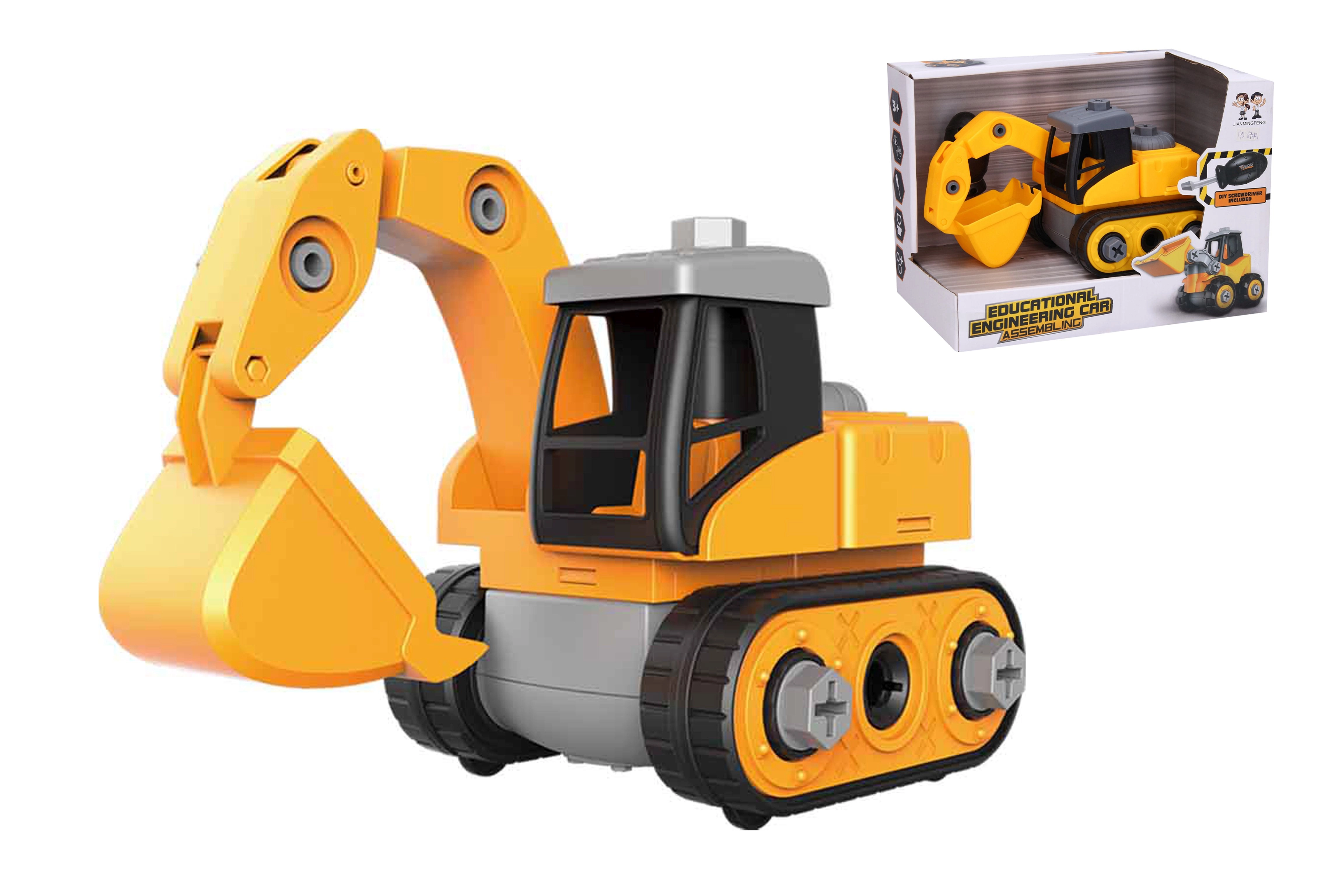 La excavadora atornillable es el juguete perfecto para niños que aman la tecnología y quieren probar a trabajar con herramientas. Este vehículo de construcción está hecho de material resistente y es fácil de montar y desmontar con el destornillador incluido.