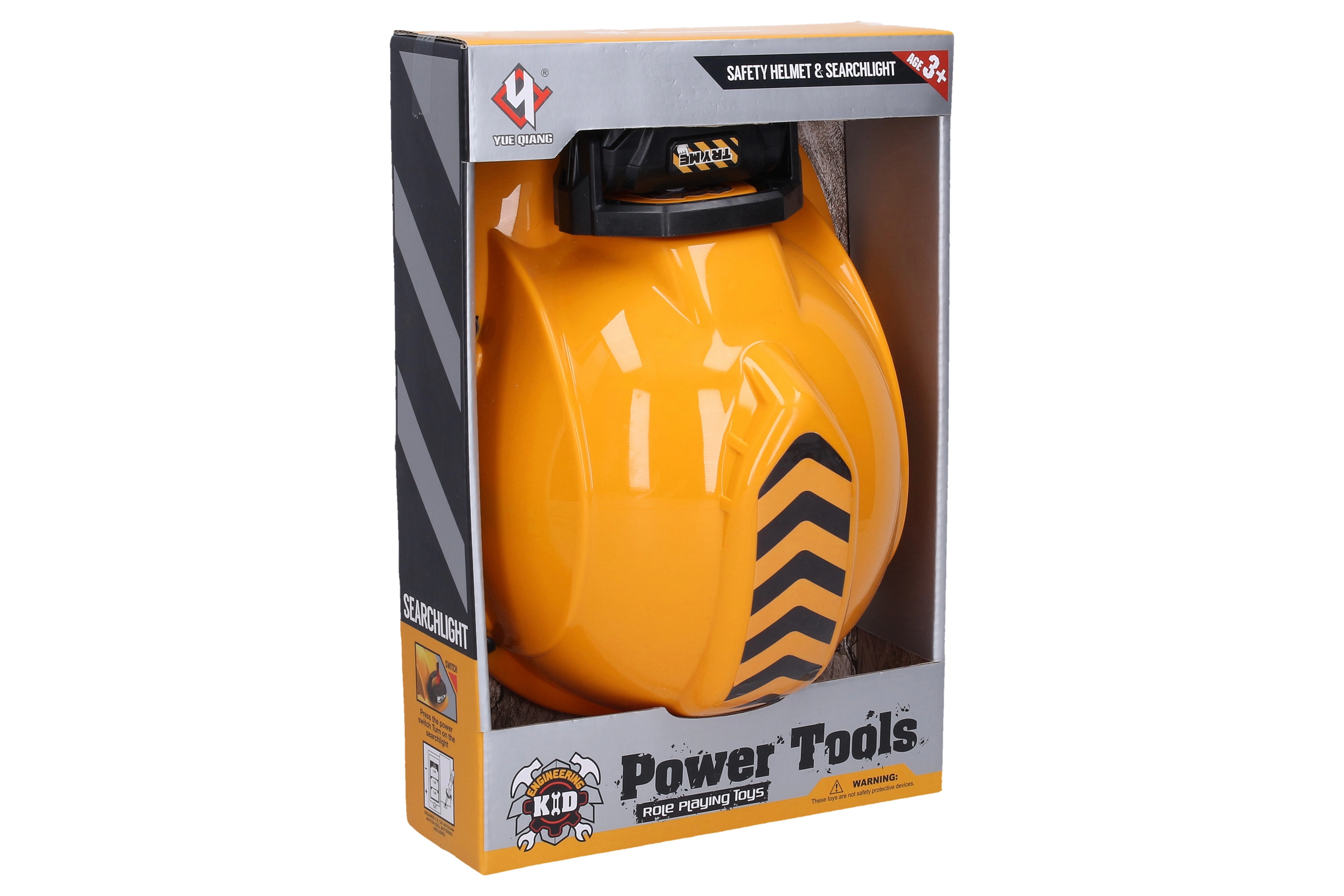 Práctico casco de construcción con linterna para pequeños constructores que ofrece juego seguro, inclinación de luz ajustable y fijación cómoda mediante correa elástica con cierre de velcro. El paquete incluye pilas, para que los niños puedan empezar enseguida.