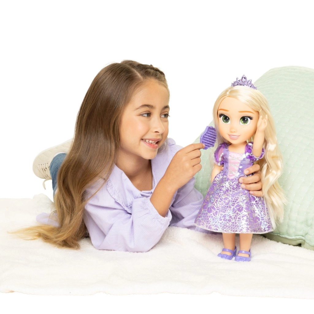 La muñeca DISNEY Princesa Rapunzel encantará a cualquier niño que ame los cuentos y el juego creativo. El vestido brillante con delicados patrones, la corona y el largo cabello rubio invitan a cepillar y crear nuevos peinados. Su diseño resistente con articulaciones móviles garantiza poses naturales y diversión durante horas.