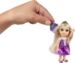 La muñeca de 15 cm cabe en la mano del niño y en la mochila. Vestidos brillantes, tiara y los colores icónicos de cada princesa para un efecto “wow” instantáneo.
