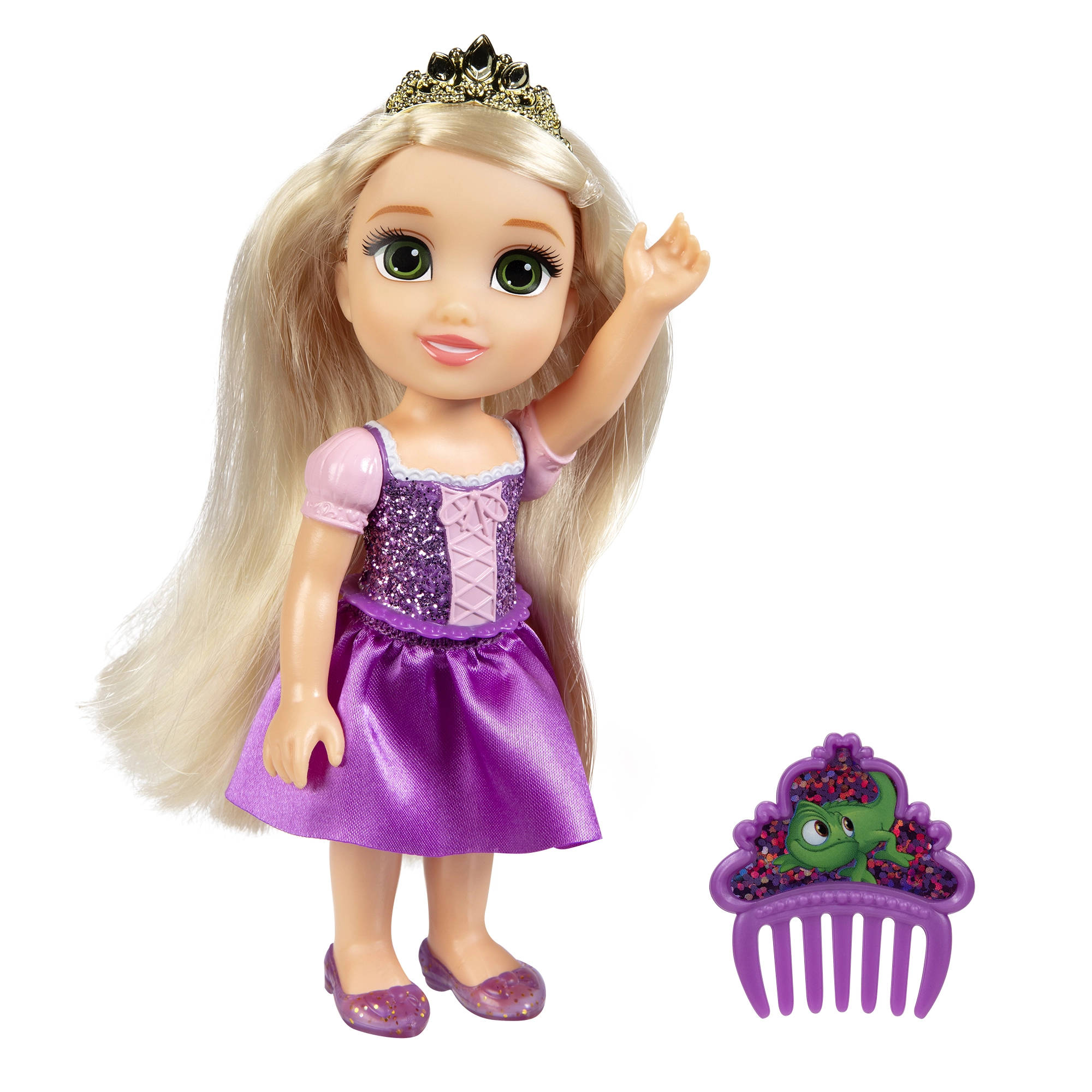 Descubre la magia de las heroínas favoritas de Disney en un formato compacto de 15 cm. Hay 4 variantes para elegir: ARIEL, BELLA, RAPUNZEL y CENICIENTA. Cada muñeca tiene extremidades articuladas para posar con facilidad, un vestido brillante acorde a su cuento y un peine a juego para peinar y adornar el cabello.