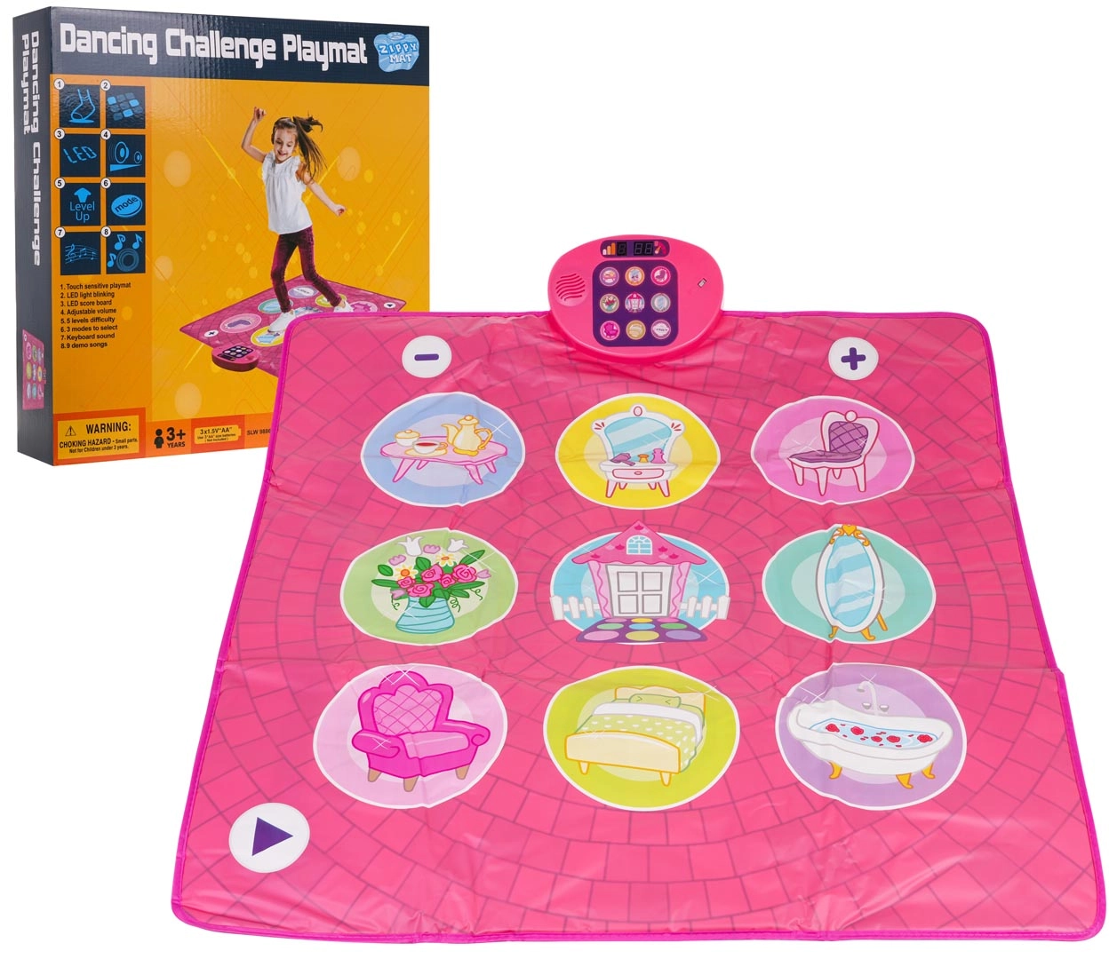 La alfombrilla musical de baile ofrece 5 niveles de dificultad, que favorecen la coordinación ojo-mano y brindan diversión para toda la familia. Dispone de 3 modos de juego: baile, piano y modo demostración con nueve canciones integradas. También incluye un panel con imágenes retroiluminadas que atraen a los niños y fomentan su juego imaginativo.