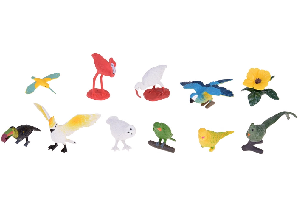 Descubre la alegría de explorar la naturaleza con un set de 10 figuras coloridas de aves exóticas y una flor adicional. Las figuras presentan acabados detallados, colores vivos y son ideales para aprender y jugar de forma creativa tanto en casa como en la escuela.