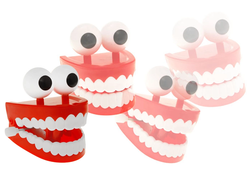 Haz reír a niños y adultos con este clásico: dientes chasqueantes de cuerda con ojos saltones. Al darles cuerda, los dientes se mueven solos y chasquean alegremente: un gadget para entretener, un regalo original y un accesorio de oficina divertido.