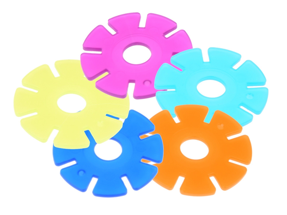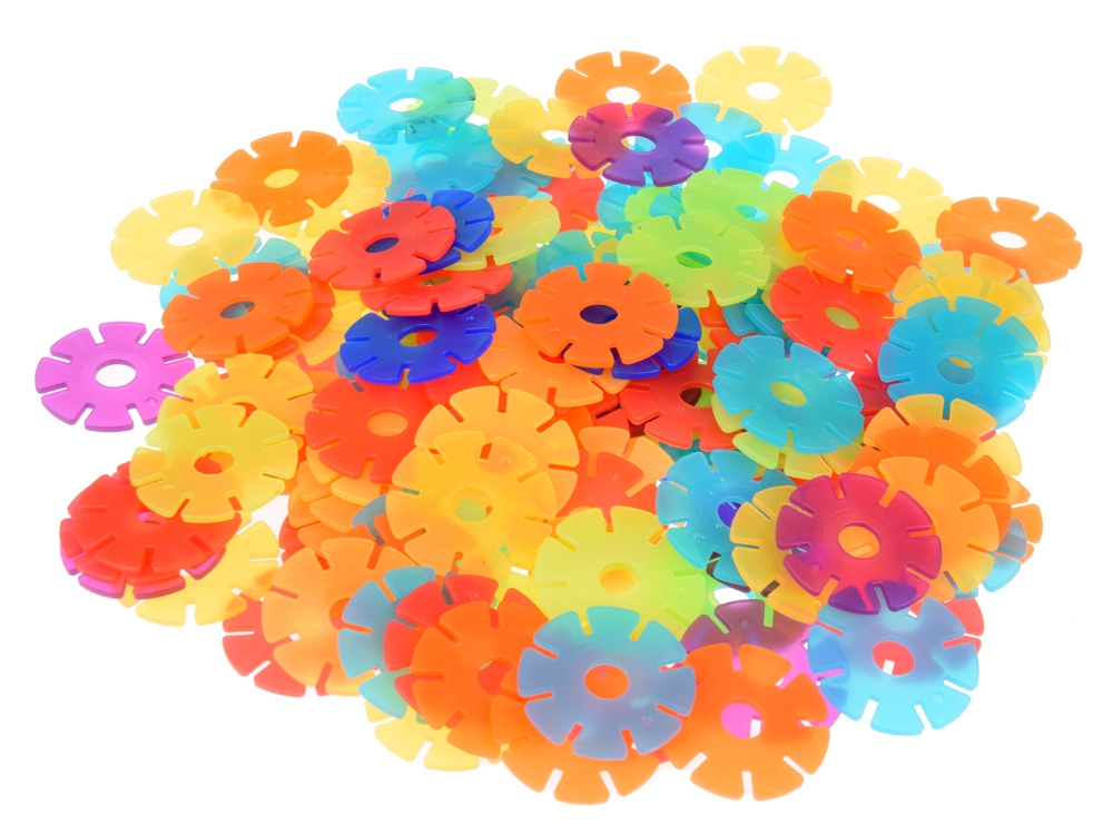 Los colores intensos estimulan la vista y los bordes en relieve, el tacto. Las piezas en forma de copo son ligeras, resistentes e ideales para el juego individual y en grupo. Con los copos también se pueden formar letras y números, por lo que el set apoya de forma natural el aprendizaje temprano.