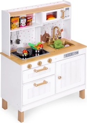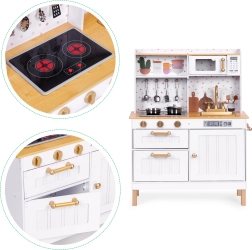 La cocina infantil de madera ECOTOYS es una elección ideal para pequeños chefs. Aporta alegría y diversión al imitar actividades reales de cocina y desarrolla la destreza manual y la creatividad. La cocina está fabricada con materiales de calidad e incluye 7 accesorios de cocina metálicos.