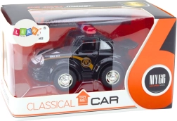 Este elegante coche de policía negro a escala 1:38 será apreciado por cualquier entusiasta de los clásicos del motor. Está equipado con mecanismo de inercia, que permite un rápido desplazamiento hacia adelante tras tirarlo hacia atrás.
