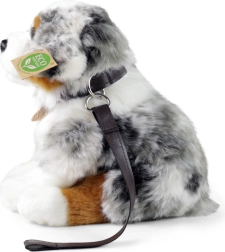 Este pastor australiano está cosido a mano con suave tejido de peluche, lo que le aporta un aspecto realista.
