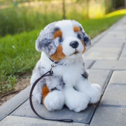 Este precioso perro de peluche Pastor Australiano está cosido a mano con peluche de alta calidad y tacto suave, por lo que parece casi real. Será un compañero querido en la habitación infantil y un fiel amigo para todas las edades.