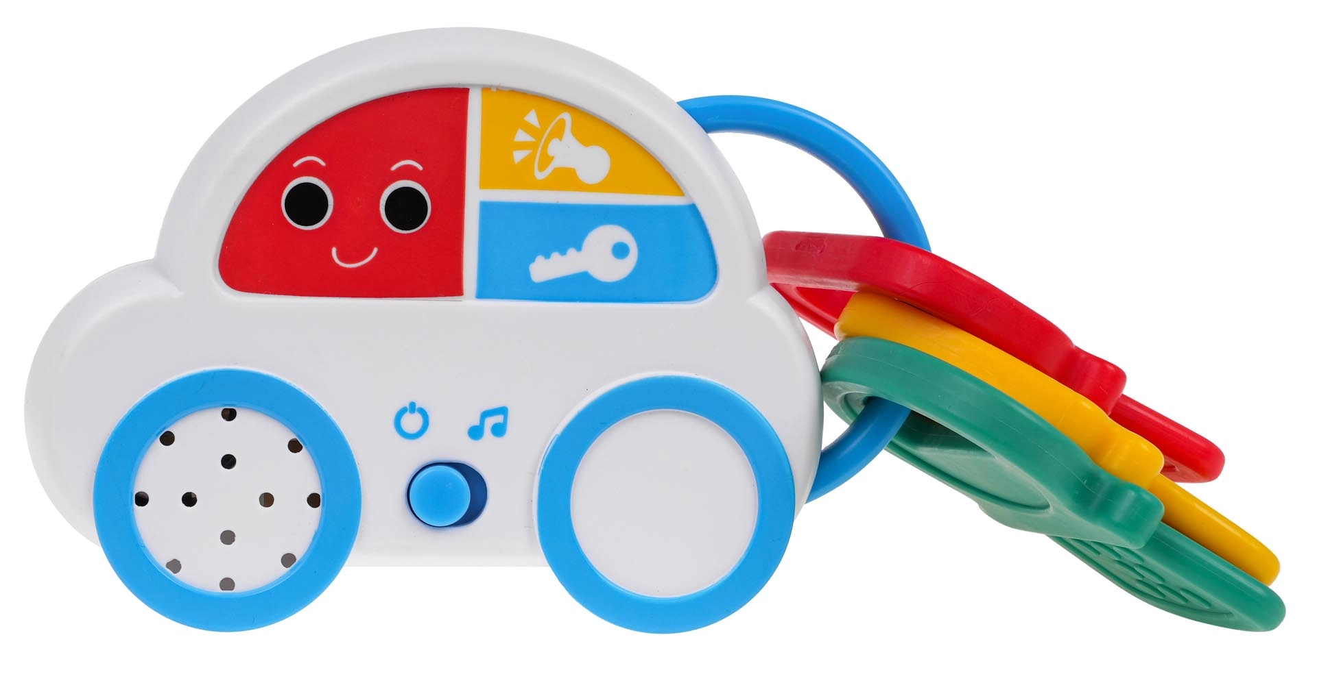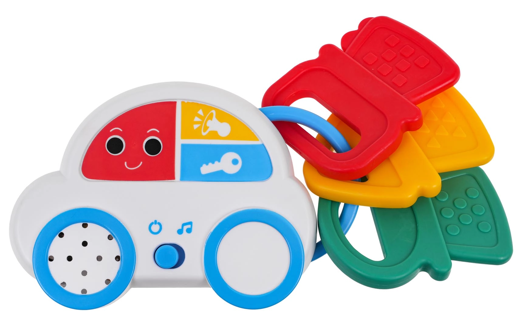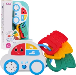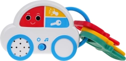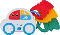 El cochecito interactivo con llaves ofrece a los niños un juego entretenido gracias a sus efectos de sonido, como sonidos de arranque del motor o claxon, e incluye 18 melodías. Gracias a sus diferentes funciones, el cochecito también puede servir como mordedor, lo cual es especialmente útil durante la dentición.