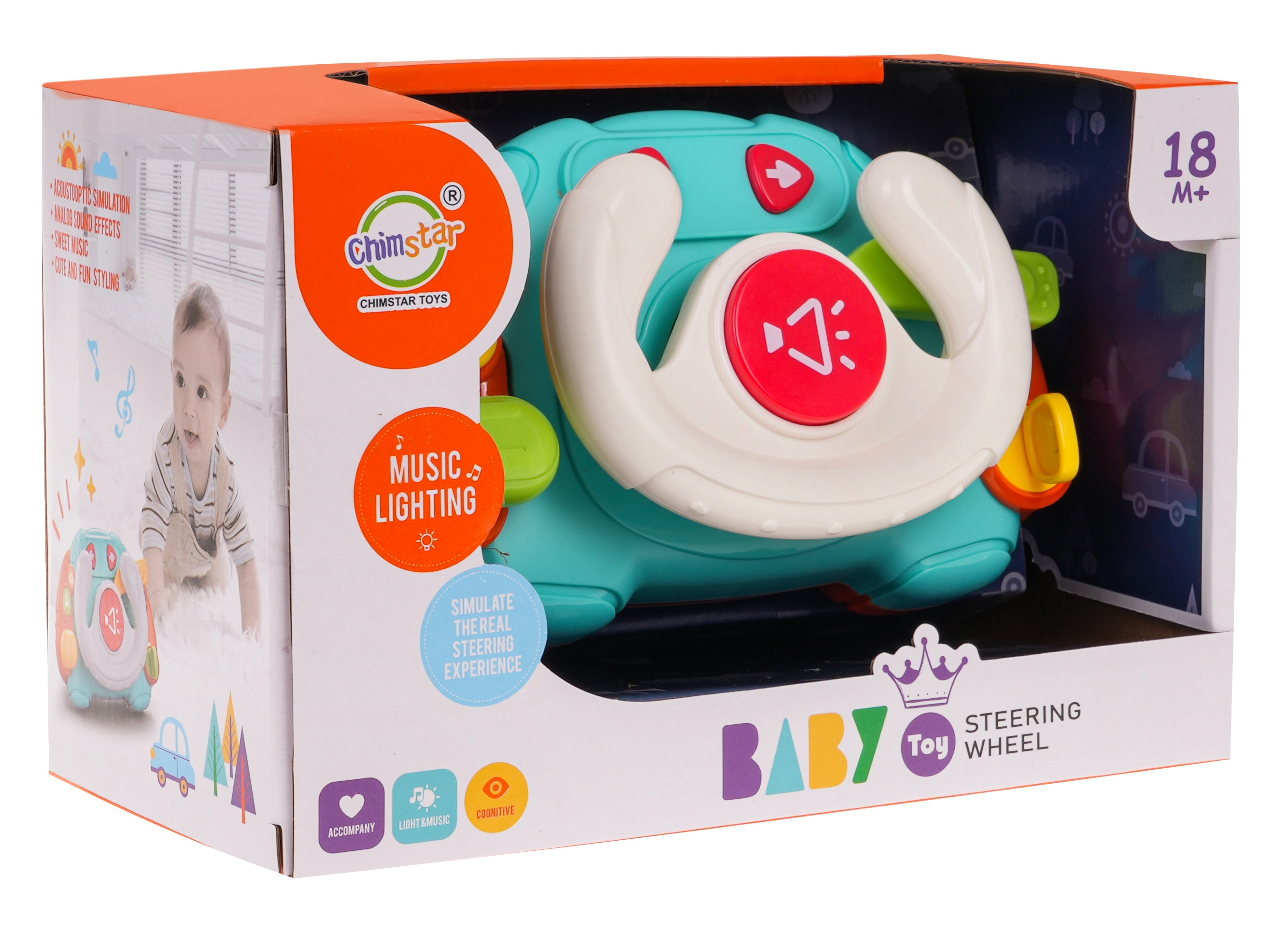 Volante infantil interactivo, que simula la conducción con funciones de sonido y luz, está diseñado para niños a partir de 18 meses. Fabricado en plástico de alta calidad, este juguete colorido atrae la atención y fomenta el juego.