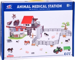 Incluye una estación veterinaria de 34 x 24 x 15 cm, fabricada en plástico resistente y equipada con puertas y ventanas funcionales. Aquí los niños pueden simular el cuidado de los animales y proporcionar la atención médica necesaria.
