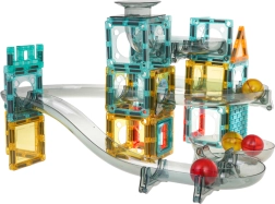 Colorido juego de construcción magnético para niños a partir de 3 años que permite crear su propia pista de canicas con piezas transparentes. Los niños disfrutarán viendo cómo las canicas pasan por túneles, curvas y embudos, mientras desarrollan su creatividad, motricidad fina y coordinación mano-ojo. La estructura estable, los colores vivos y la posibilidad de construir siguiendo instrucciones ilustradas o su propia imaginación garantizan horas de diversión.