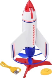 - Cohete con batería integrada, plataforma de lanzamiento, control remoto, pila CR1220 para el mando, cable USB para carga, pegatinas