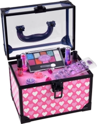 Maletín con asa, tips autoadhesivos para uñas, 2× brillo labial con purpurina, 2× barra de labios, 2× laca de uñas, paleta de sombras en crema con aplicador, 2× anillo