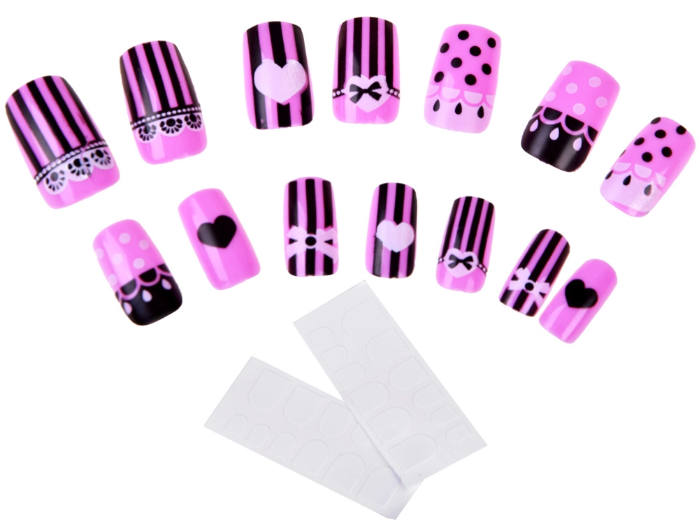 Uñas postizas con distintos diseños y anillos en forma de corazón aportan un toque de estilo y brillo a cualquier look.