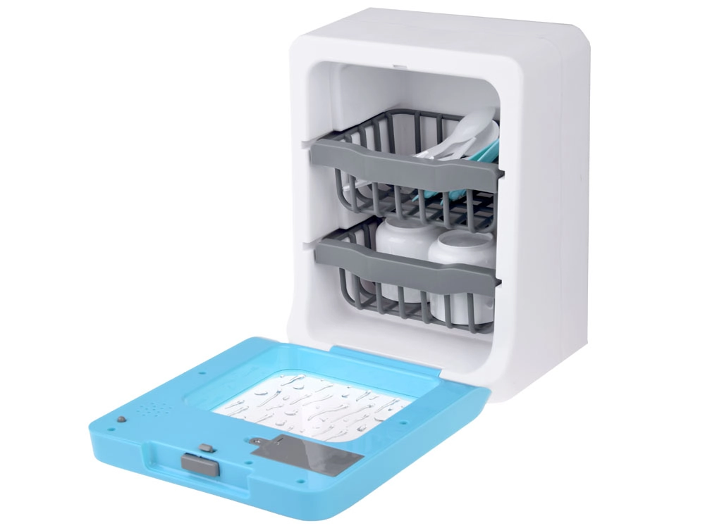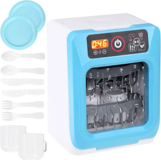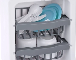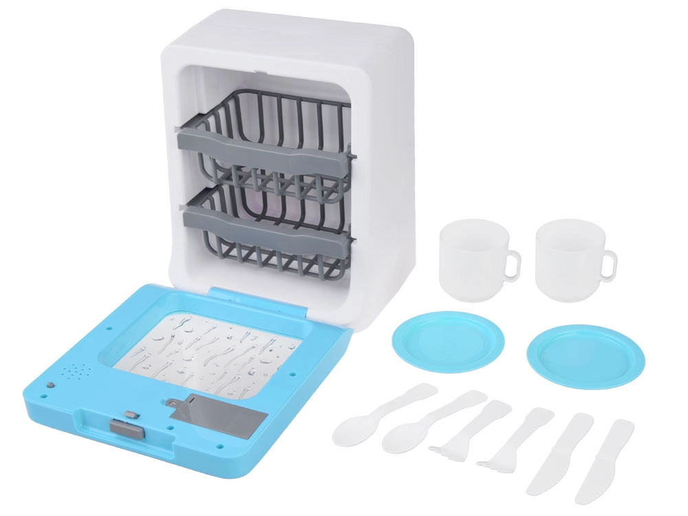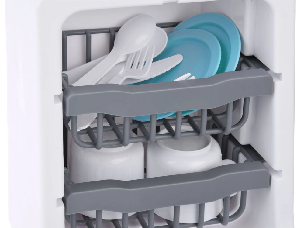 Este lavavajillas infantil aporta elementos realistas al juego: desde el murmullo del agua y el sonido de enjuague/esterilización hasta la señalización del final del programa. Gracias al panel táctil, los pequeños ayudantes eligen fácilmente el modo y el tiempo. La puerta abatible y las cestas de dos niveles permiten introducir cómodamente platos, tazas y cubiertos.