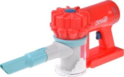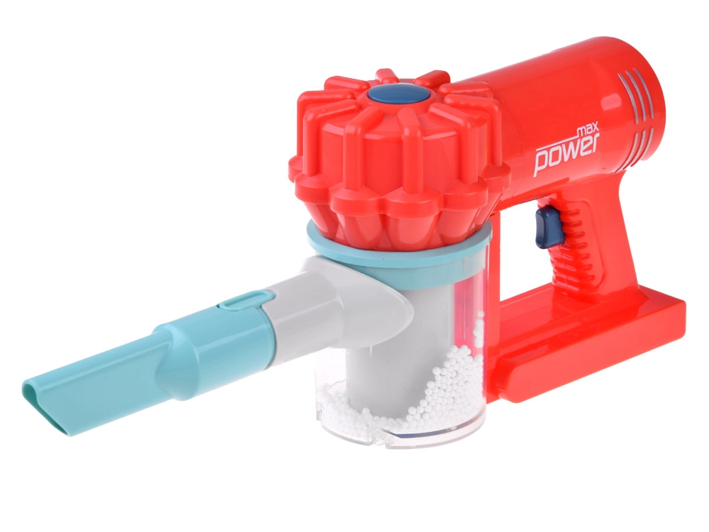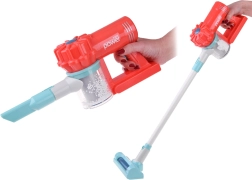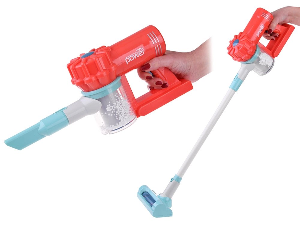 Este set de limpieza para niños está hecho de plástico resistente en colores alegres y es ideal para jugar a la casa u hotel. La aspiradora, que funciona con 3 pilas AA (no incluidas), emite un sonido realista al pulsar el botón y pone en movimiento bolitas blancas en el depósito transparente, de modo que los niños tienen la sensación de una aspiración real.