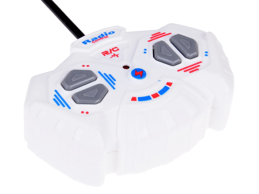 El mando a distancia con antena de goma segura permite un control total: conducción suave hacia adelante y atrás, y giro a la derecha e izquierda. Las ruedas de goma y el chasis de plástico resistente garantizan buen agarre y estabilidad en casi cualquier superficie del hogar.