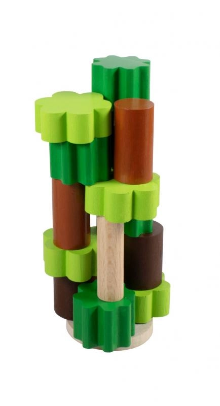 El lanzamiento del dado determina el color; el jugador elige la pieza correspondiente y la coloca sobre la base. El árbol crece, la estabilidad disminuye y la diversión aumenta. El juego es excelente para la coordinación ojo-mano, la colaboración y la paciencia, pero también para jugar en solitario.