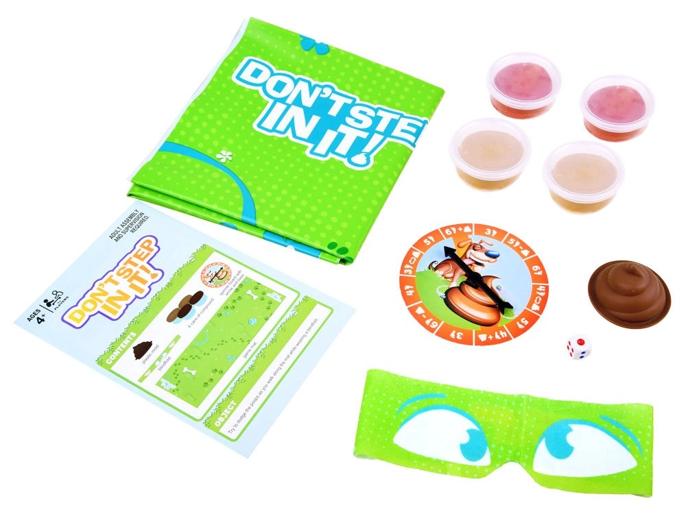 Despliega la alfombrilla, moldea los “obstáculos” con la plastilina incluida y ponte el antifaz. Los compañeros de juego harán girar la ruleta, que indicará el número de pasos y acciones especiales. Tu objetivo es dar la cantidad indicada de pasos y no pisar ninguna “sorpresa”.
