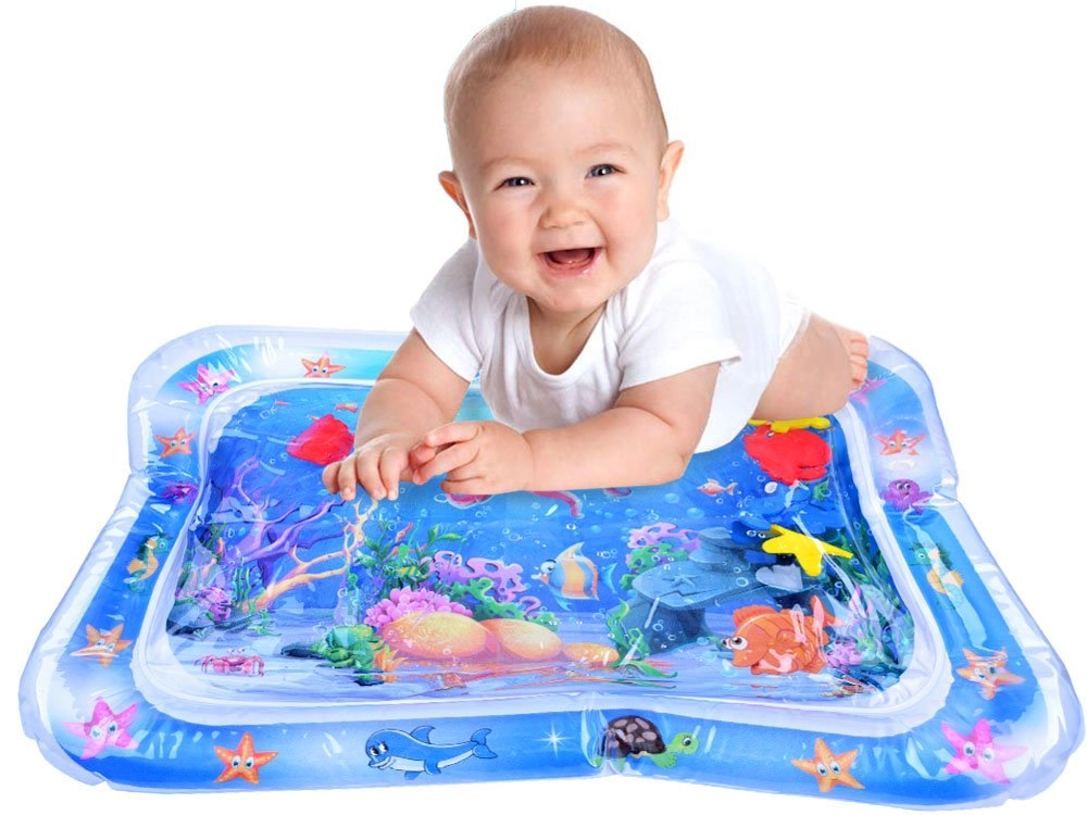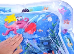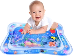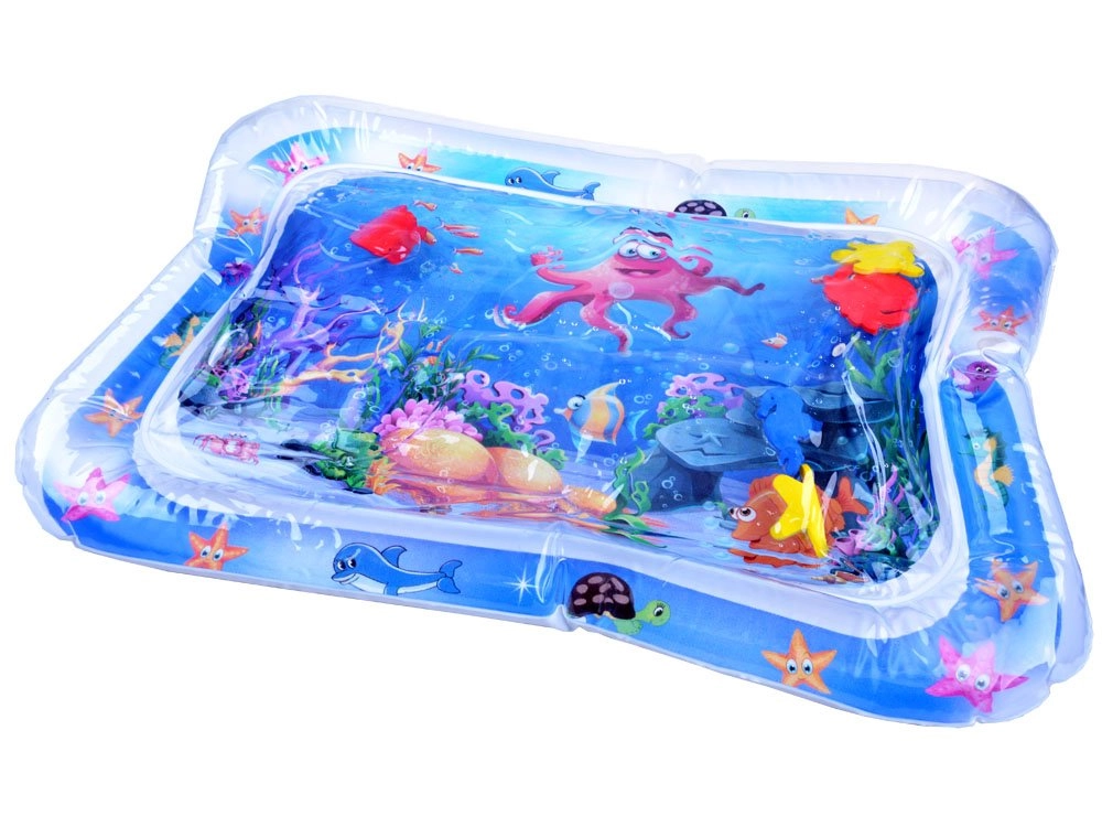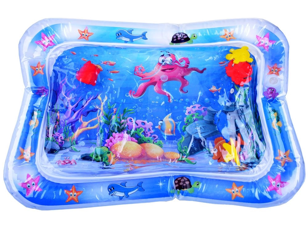 Esta alfombra de agua para jugar está fabricada con material plástico de alta calidad. Tras inflar el borde y llenar el centro con agua, los elementos flotantes con temática oceánica se mueven libremente en el interior, captando la atención del bebé y animándolo a explorar. La alfombra es ideal para colocar al bebé boca abajo, fortalece los músculos del cuello, los hombros y la espalda y favorece de forma natural un correcto desarrollo motor.