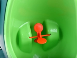 Este urinario con el popular motivo de rana fomenta la autonomía y los buenos hábitos al usar el baño. En su interior incorpora una diana giratoria que motiva de forma lúdica a apuntar correctamente y mejora la precisión. La superficie interior lisa facilita el mantenimiento y garantiza la higiene en el uso diario.