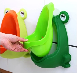 El divertido urinario infantil de pared con forma de rana convierte el entrenamiento en el baño en un juego. Gracias a la diana giratoria, los niños practican de forma natural la puntería, la cazoleta extraíble permite una limpieza rápida y la instalación con ventosas sin taladrar posibilita ajustar la altura según el crecimiento del niño.