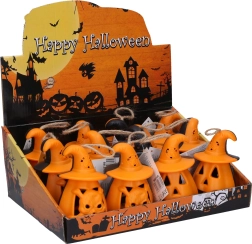 Crea el ambiente perfecto y espeluznante con esta decoración compacta: una calabaza de Halloween luminosa con dimensiones de 11 × 6,5 cm. Ideal para la mesa, el alféizar o la habitación infantil, lista para usar gracias a que incluye 3× pilas LR54 (AG10) en el paquete.