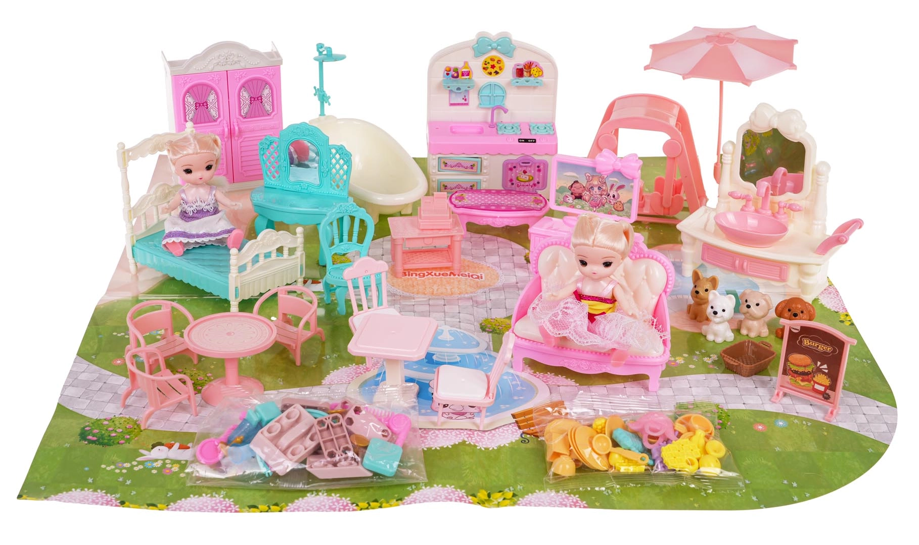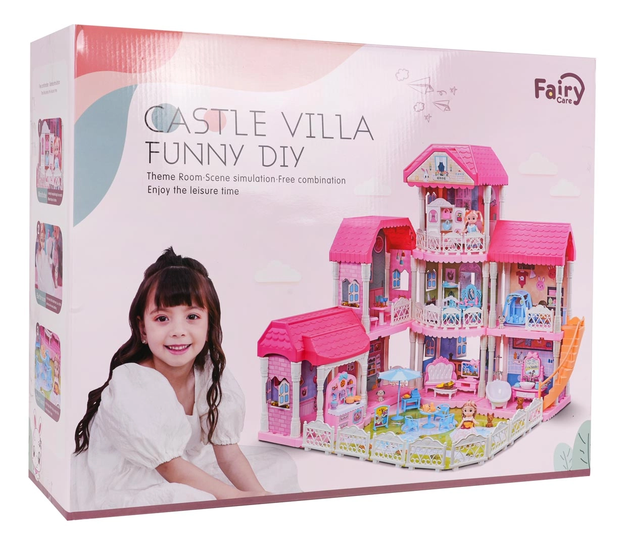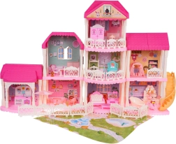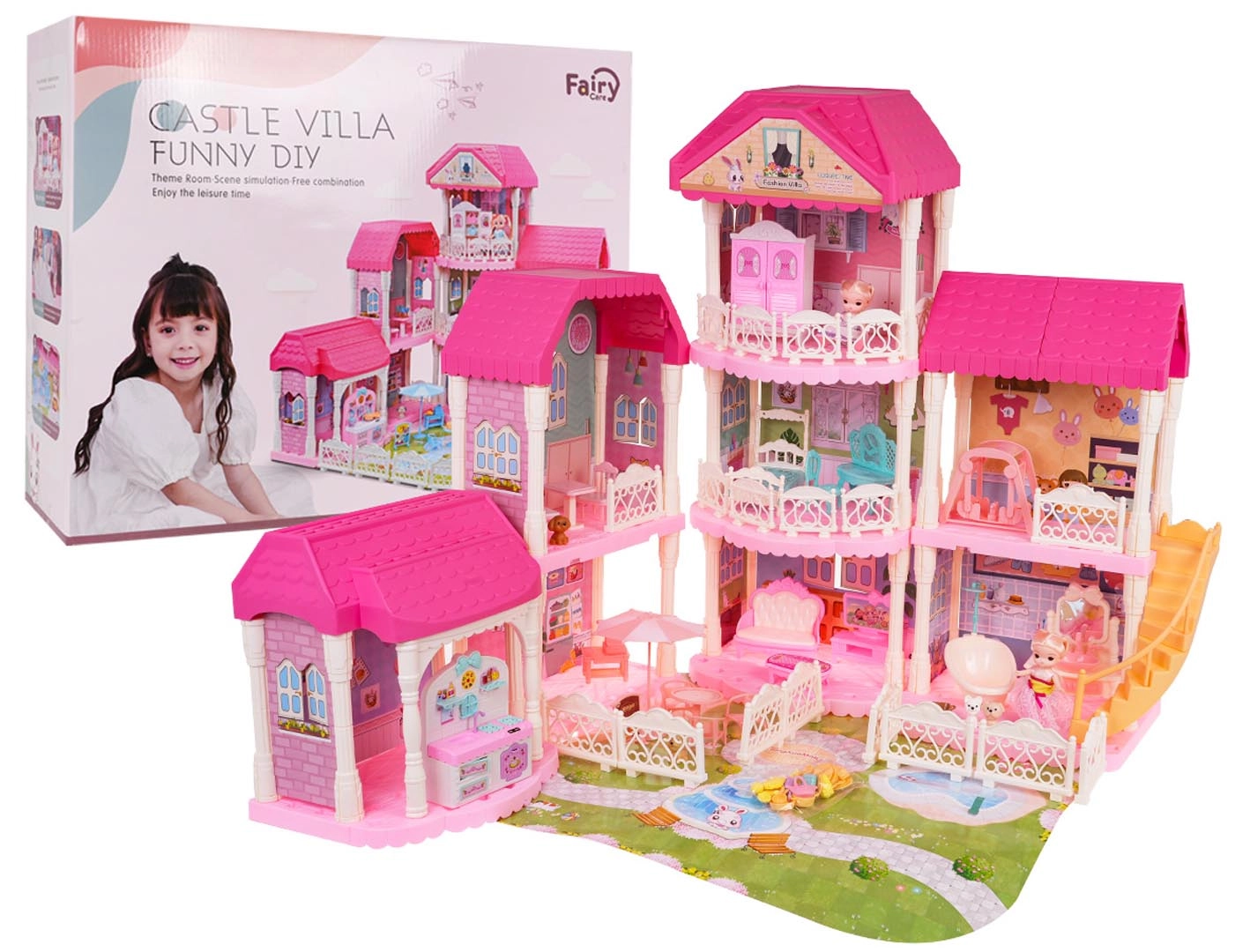 Descubre la preciosa y gran casita rosa, ideal para niños a partir de tres años. Esta casita de cuento está compuesta por 4 módulos desmontables que puedes combinar libremente. La casita ofrece un salón totalmente equipado, baño, dormitorio, cocina y vestidor. Tampoco falta un cuarto infantil y una zona exterior de relax.
