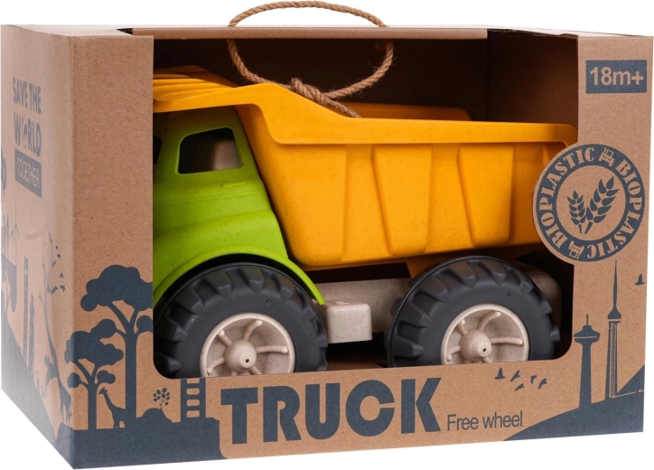 El volquete está hecho de bioplástico, lo cual es respetuoso con el medio ambiente y a la vez seguro para los niños.
