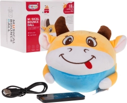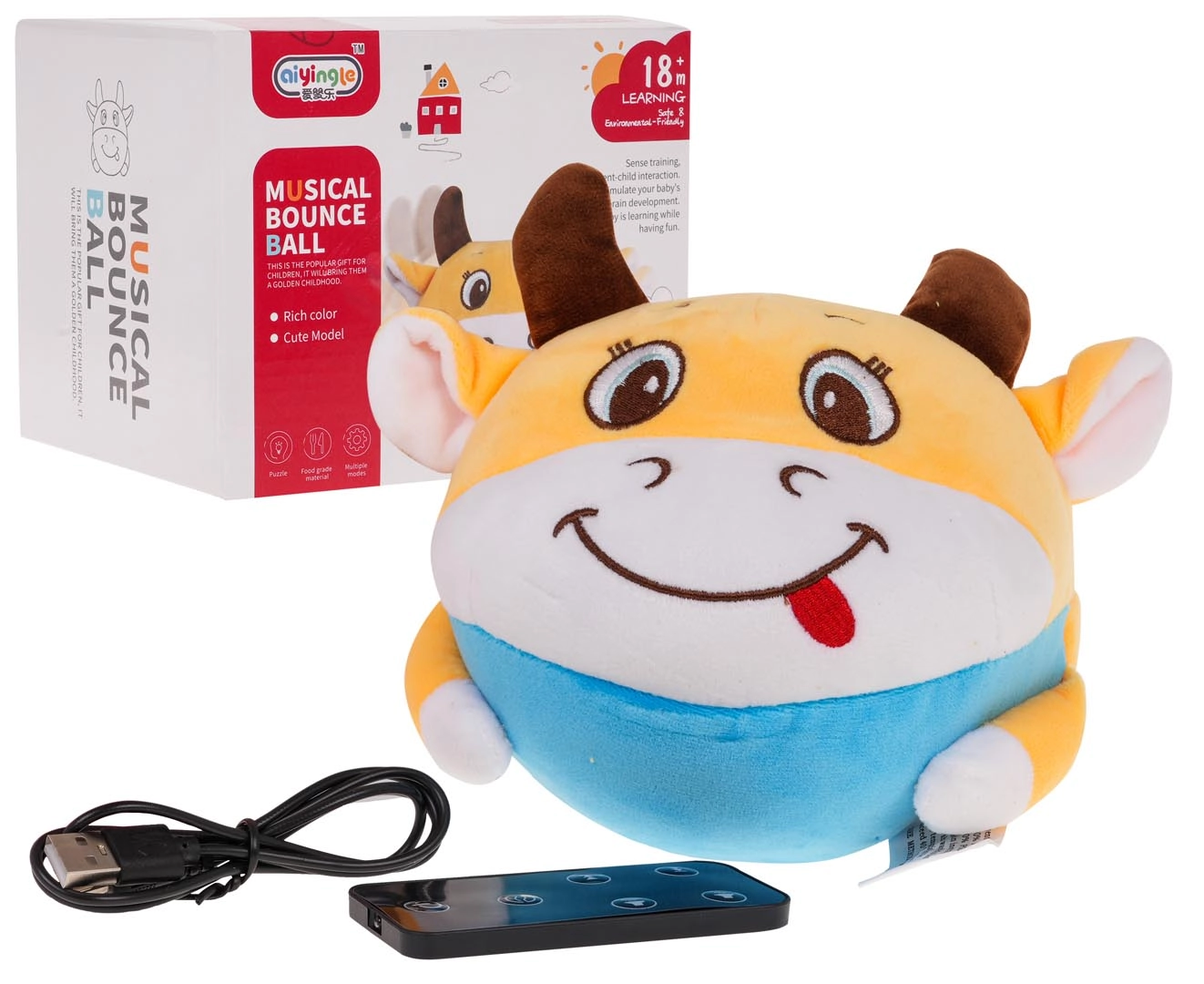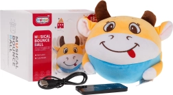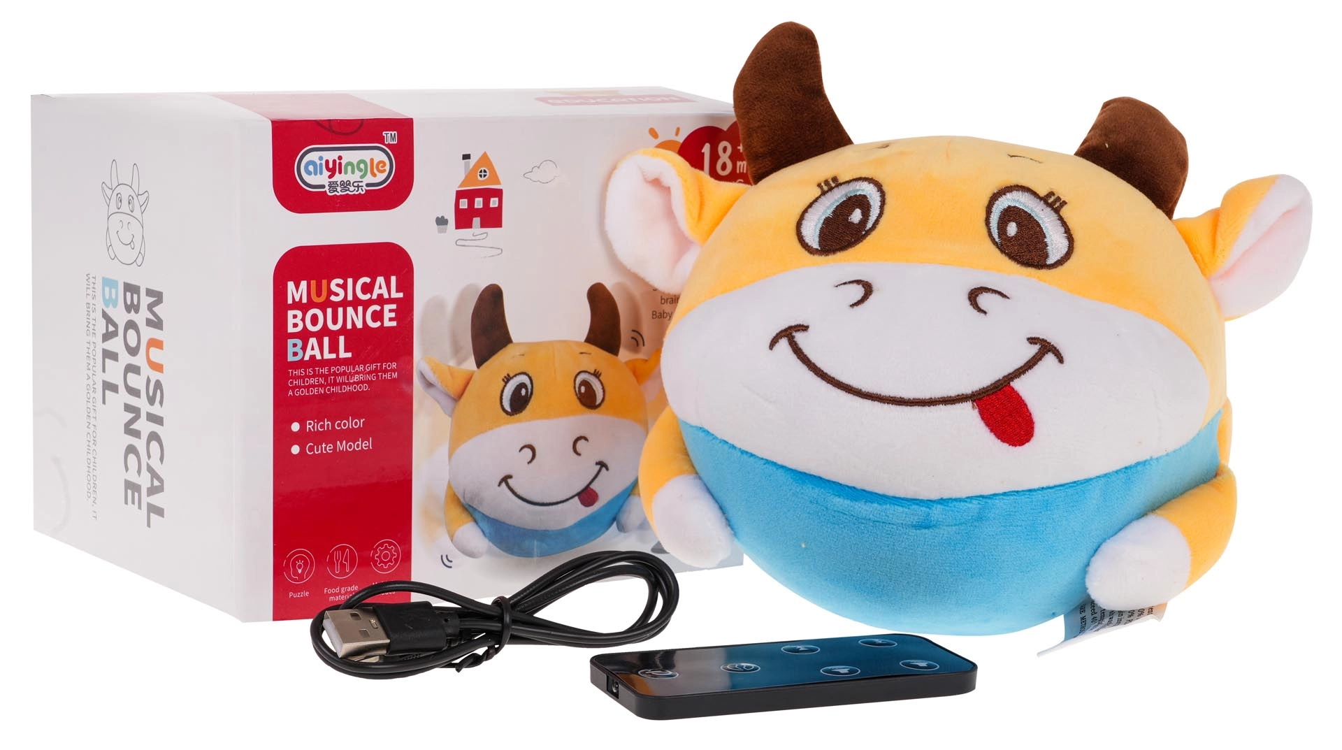 La alegre vaquita saltarina es un suave juguete de peluche interactivo para los más pequeños. En su interior tiene un módulo funcional redondo y extraíble que, al encenderlo, salta, se mueve y reproduce melodías, además de iluminarse con una luz verde. El manejo se facilita con el control remoto incluido, y la alimentación la proporciona una batería recargable con carga mediante USB.