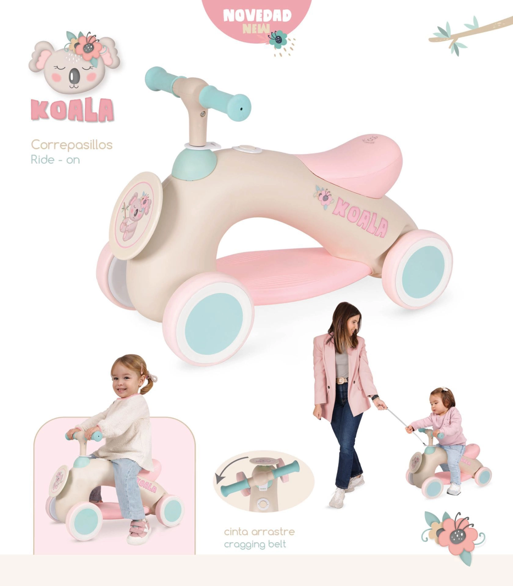La adorable bicicleta sin pedales de la colección KOALA ofrece una conducción segura y ruedas silenciosas. Incorpora manillar giratorio con protección para los dedos, puños de goma, reposapiés y correa de arrastre para la ayuda de los padres. Ligera, estable e ideal para desarrollar el equilibrio y la coordinación.