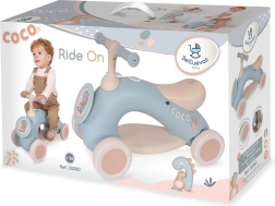 Elegante correpasillos infantil de la colección COCO 2024 con un adorable motivo de dinosaurio que favorece el desarrollo del equilibrio y la coordinación. Ofrece manillar giratorio con sistema de seguridad, ruedas silenciosas engomadas, reposapiés cómodo y correa de tiro para un guiado fácil por un adulto. La estructura ligera de plástico y goma garantiza manejo sencillo y una conducción segura en casa y en exterior.