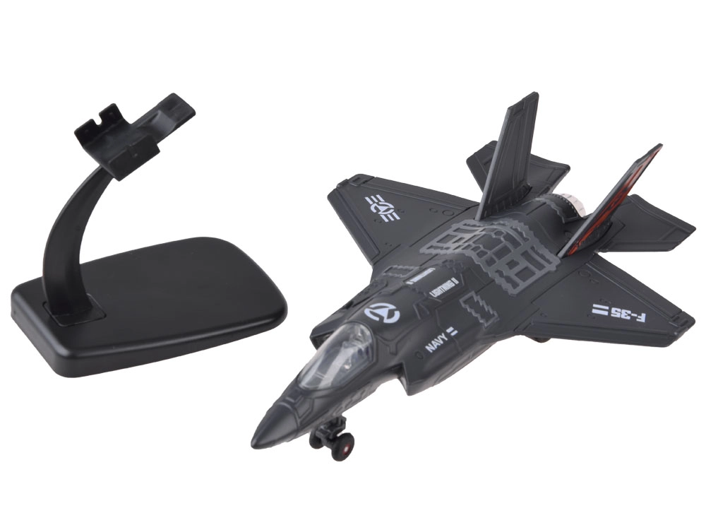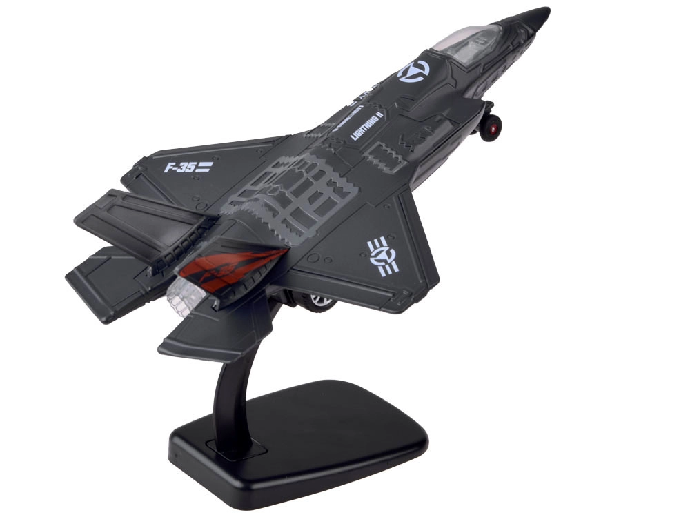 El modelo es ideal no solo para jugar, sino también como pieza de colección. Gracias al soporte incluido, podrás exhibirlo fácilmente en una estantería. Se entrega en un embalaje colorido y estético, por lo que es un regalo perfecto para pequeños pilotos y amantes de la tecnología militar.