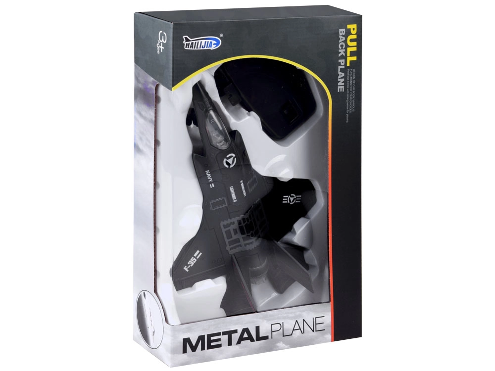 Descubre el detallado modelo metálico del avión militar F-25, que combina una construcción resistente con funciones atractivas para niños a partir de 3 años. Tras tirar de él hacia atrás, el mecanismo pull-back lo hace avanzar. Al presionarlo contra la superficie se activan los sonidos de motor y disparos y se enciende la iluminación LED de la cabina, aumentando el realismo del juego.