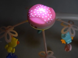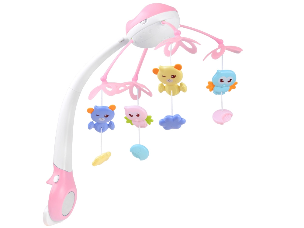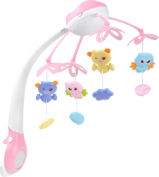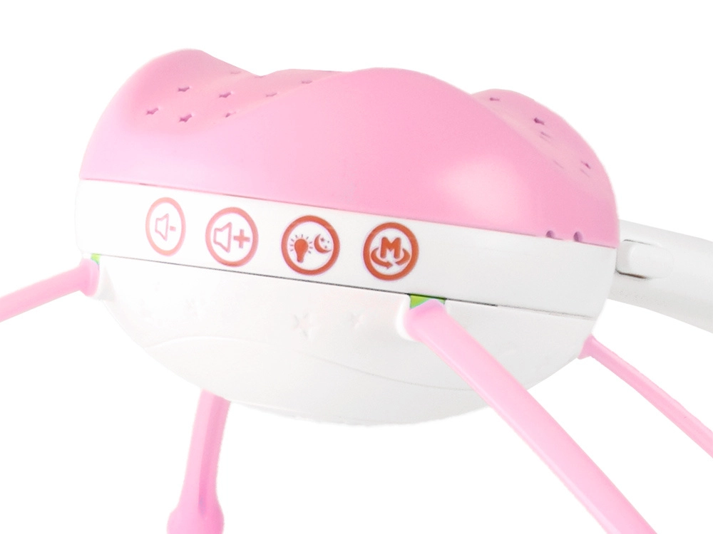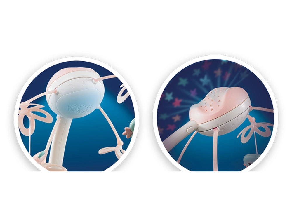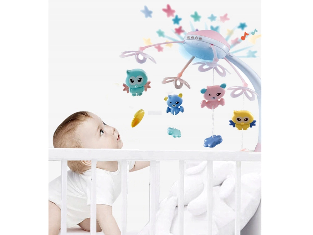 Este carrusel multifuncional combina un mecanismo musical, una lámpara nocturna con proyector de estrellas y juguetes giratorios en suaves colores pastel. Gracias al control remoto puedes encenderlo o bajar el volumen desde otra habitación sin molestar al bebé.