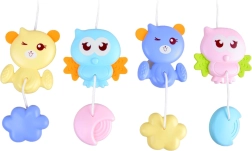 Las figuritas colgantes y coloridas atraen la vista y favorecen la coordinación ojo-mano durante el tiempo de vigilia.