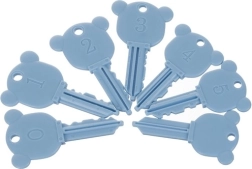 Las llaves únicas con forma de osito están numeradas y encajan siempre con un solo vehículo: desarrolla la lógica y la coordinación.