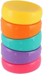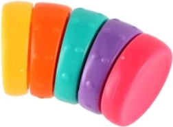 Presentamos el anillo antiestrés arcoíris: una pequeña torre con 5 anillos curvos y de colores que encajan a la perfección. Cada anillo tiene texturas y formas variadas, lo que favorece la motricidad fina y estimula la creatividad.