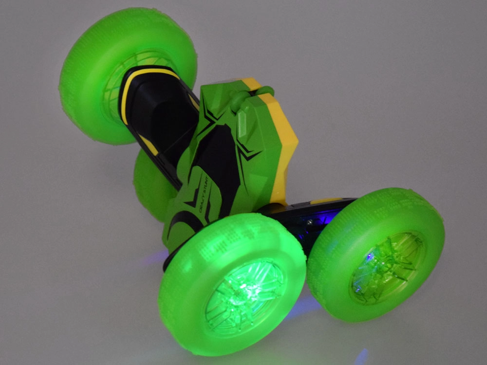 Este innovador cochecito está equipado con grandes ruedas de goma con un dibujo marcado que garantizan una excelente adherencia incluso en superficies irregulares. Sus ruedas están montadas sobre rodamientos, lo que permite realizar maniobras impresionantes y acrobacias. Las ruedas iluminadas aportan un brillante efecto visual al conducir en penumbra o en habitaciones oscuras.