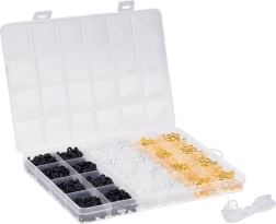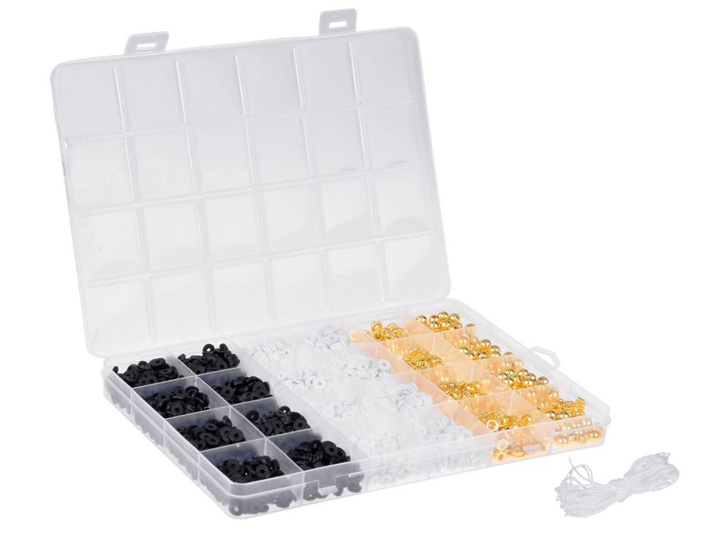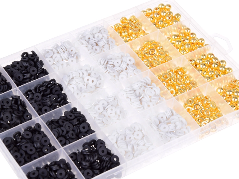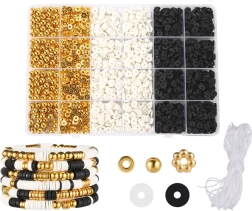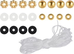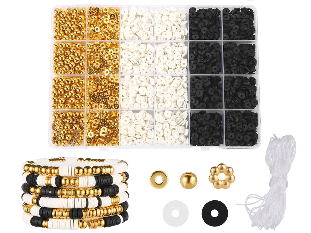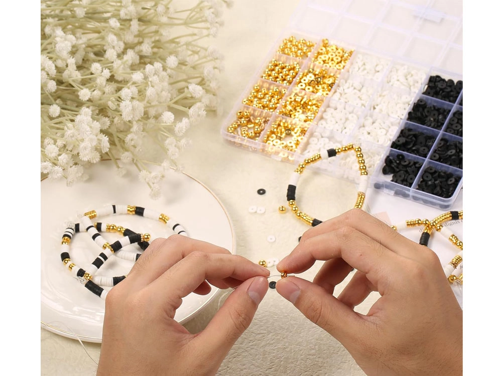 Con nuestro kit creativo de cuentas puedes crear no solo pulseras, sino también collares, pendientes o anillos: ¡tu única limitación es la imaginación! Los colores clásicos como blanco, negro y dorado garantizan que las joyas resultantes sean no solo únicas, sino también muy elegantes. Las joyas hechas a mano son hoy uno de los accesorios más de moda.