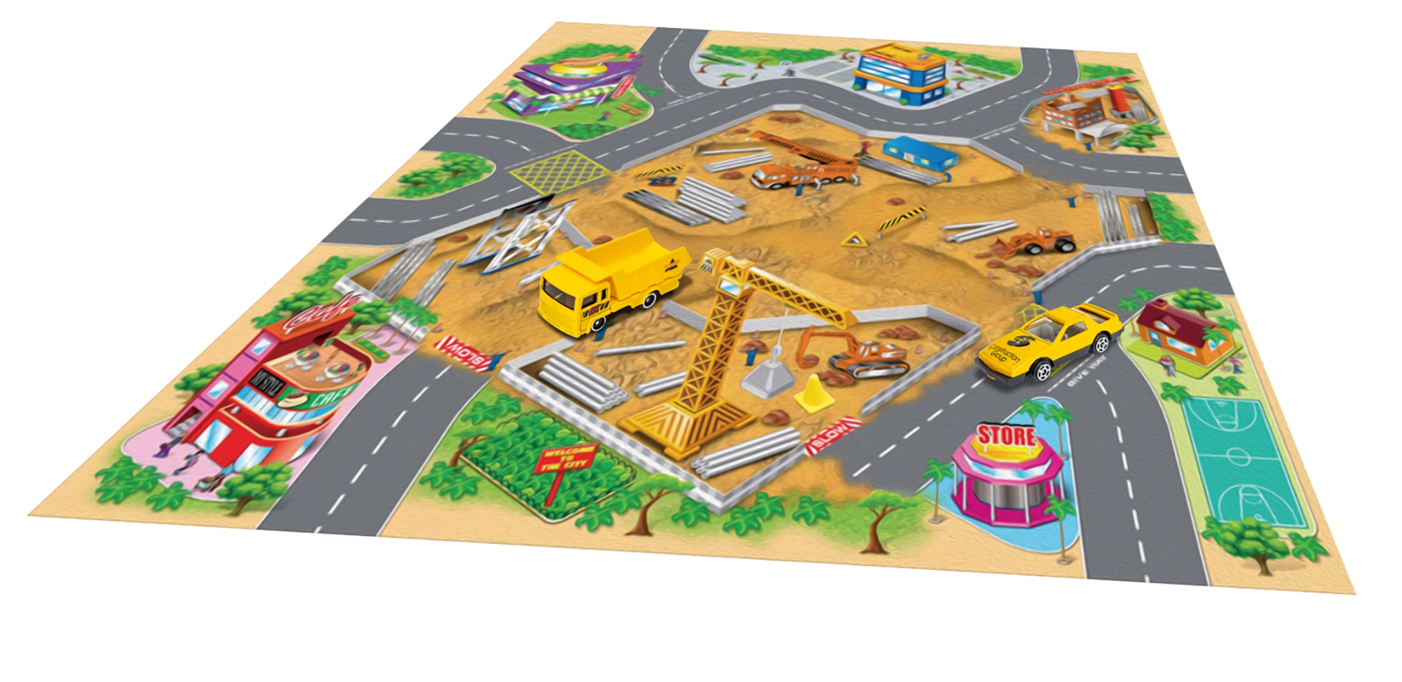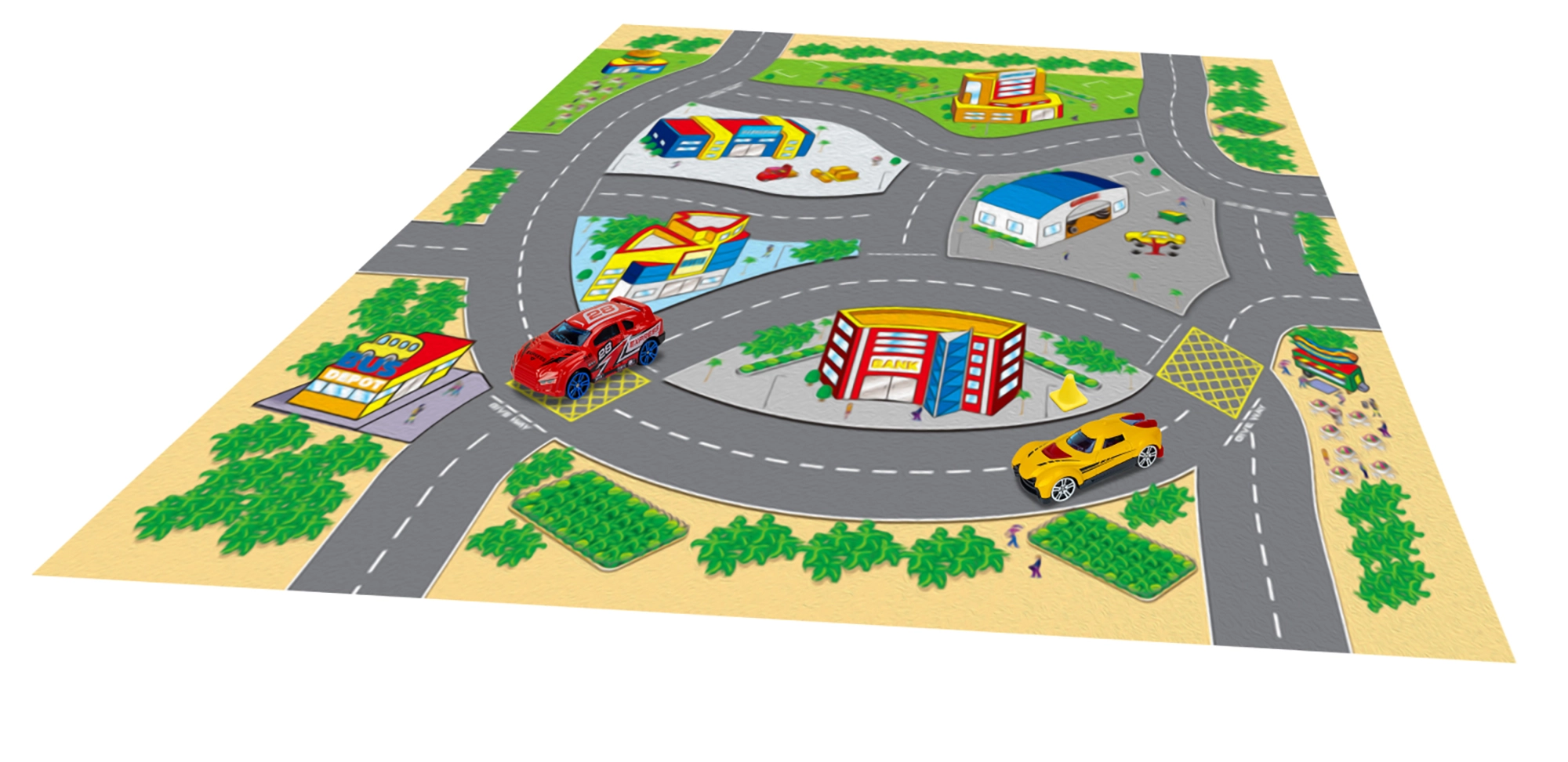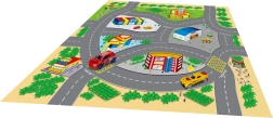 Este mapa de juego ofrece a los niños un mundo lleno de historias y aventuras. El material textil es agradable al tacto, fácil de plegar y guardar, mientras que los vehículos metálicos destacan por su resistencia y acabado realista. Gracias a sus dimensiones compactas, el set es ideal para casa, guardería y excursiones.