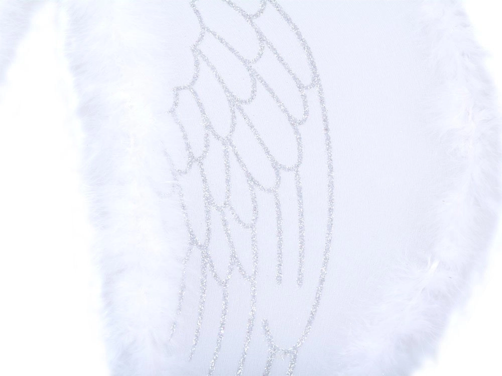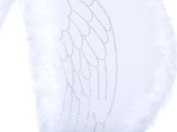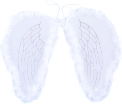 Alas blancas con adornos plateados y ribete peludo que aportan un aspecto mágico.