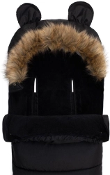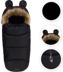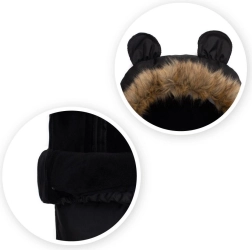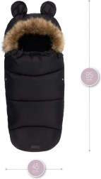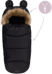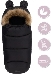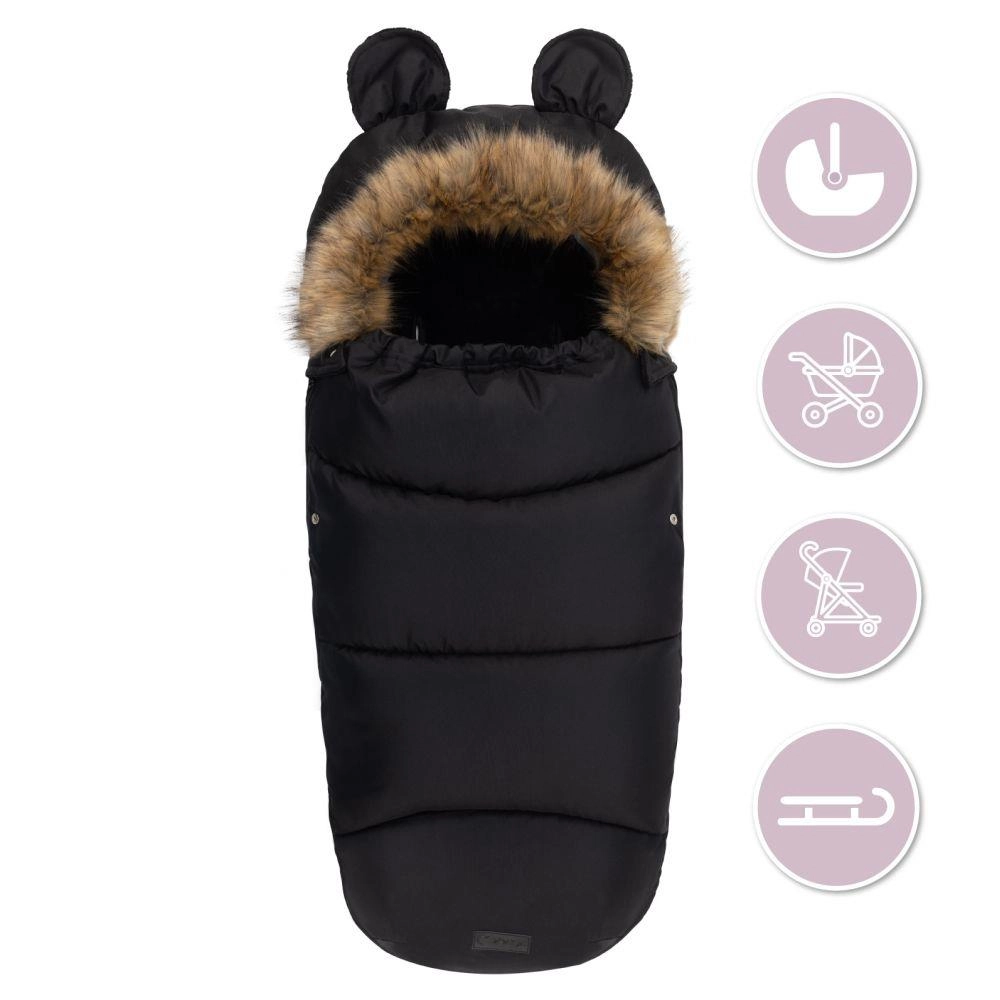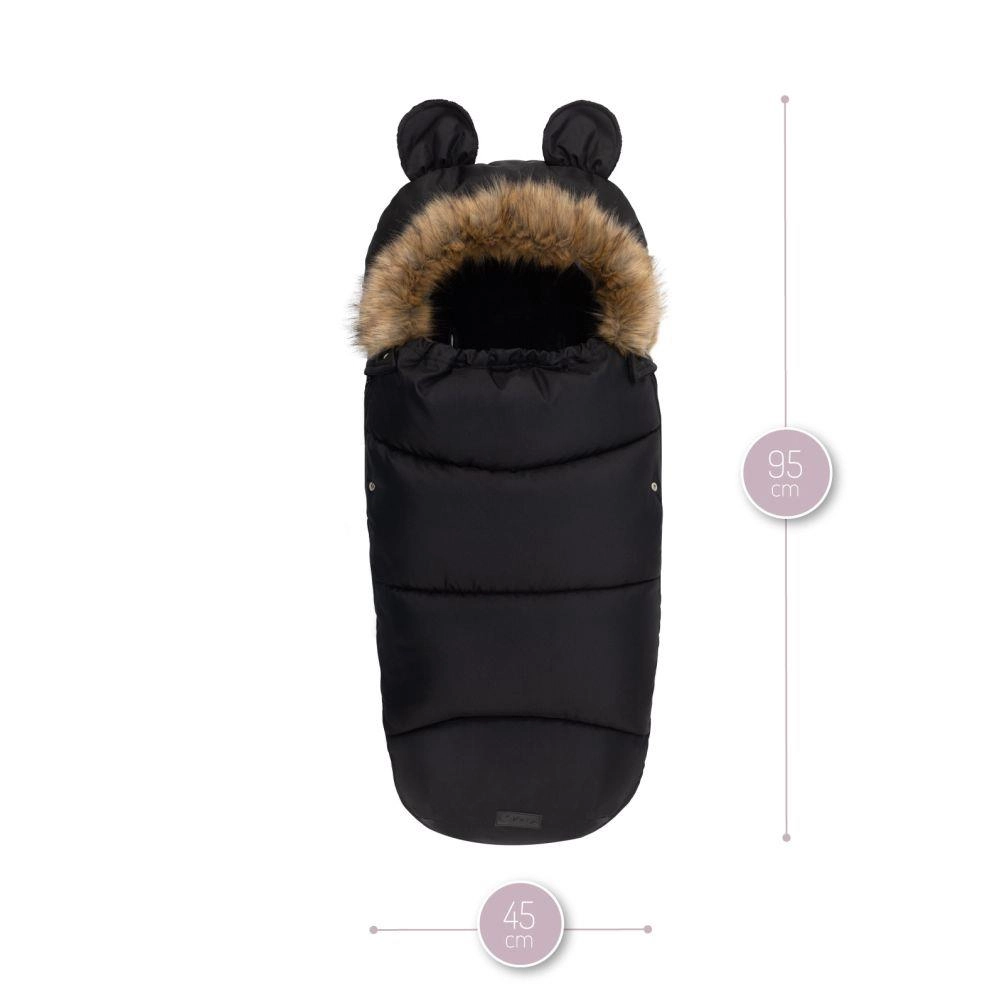 El cálido saco de invierno MoMi Cozy en elegante color negro mantiene a tu bebé abrigado y seguro incluso con tiempo gélido. Gracias a su superficie repelente al agua y al forro de suave tejido tipo peluche, ofrece excelente aislamiento térmico, protección contra el viento, la lluvia y la nieve y máxima comodidad durante los paseos. Las aberturas universales para los arneses permiten una instalación rápida en el cochecito, la silla de coche o el trineo, mientras que la adorable capucha con orejitas aporta estilo y diversión al saco.
