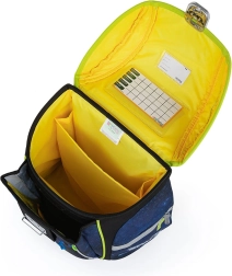 La mochila está equipada con tirantes anchos y acolchados que se ajustan perfectamente y distribuyen uniformemente la carga sobre los hombros del niño. Para la máxima comodidad, dispone de correas de ajuste y una correa de pecho. Los prácticos elementos reflectantes y la gran cantidad de bolsillos aumentan la seguridad y la funcionalidad. Un separador interior extraíble garantiza la organización del material escolar.