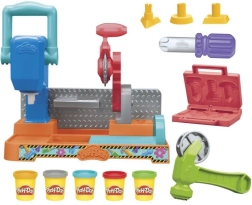 ¡Descubre el divertido set de Play-Doh para pequeños constructores! Este colorido taller ofrece una sierra móvil, iconos de herramientas y moldes para crear bloques, triángulos y engranajes. Los niños pueden usar el deslizador para dar forma y, con el martillo o el destornillador, crear obras únicas.