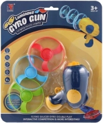 El iniciador con forma de pistola permite colocar y lanzar las hélices cómodamente con una sola pulsación del gatillo, ideal para niños y principiantes.